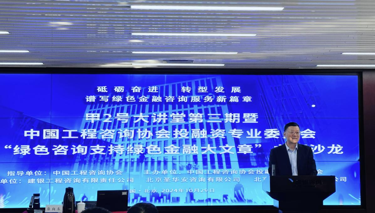 2024年10月29日,中国工程咨询协会投融资专业委员会在北京成功举办了“绿色咨询支持绿色金融大文章”主题沙龙。本次沙龙由建银工程咨询有限责任足球篮球官方直播平台、北京财指南咨询有限足球篮球官方直播平台和北京圣华安咨询有限足球篮球官方直播平台承办。建银咨询副总裁、执行董事唐晓阳,业务总监阙金声、刘海涛等领导出席,沙龙活动由专委会秘书长阙金声主持。