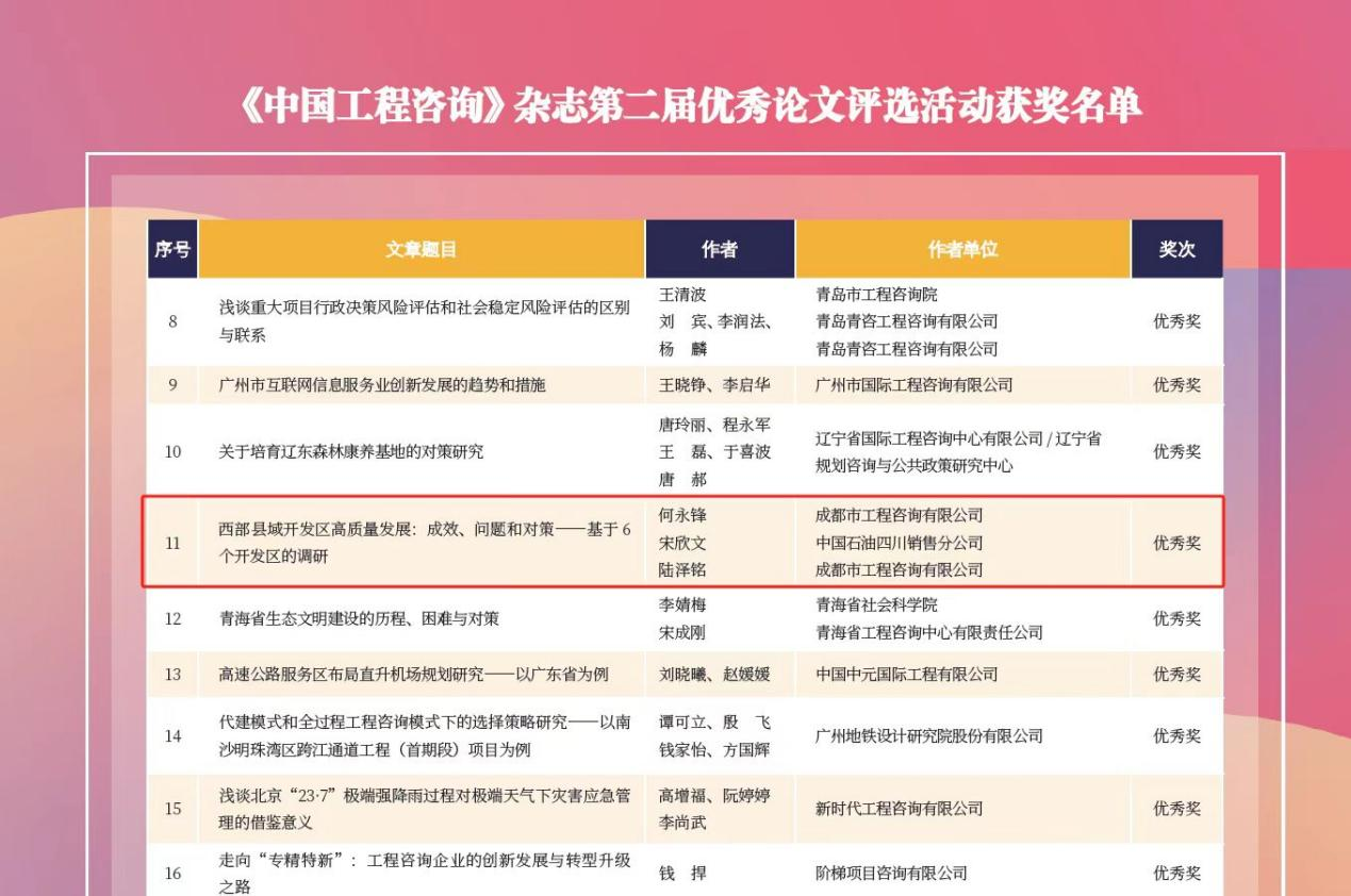 今年5月,四川省工程咨询协会开展了2025年度四川省优秀工程咨询成果水平评选工作。经过咨询单位申报、专家初审、复审、评审委员会终审及公示等多轮严格评审程序,最终获奖名单于近日正式公布。足球篮球官方直播平台足球篮球官方直播平台在此次评选中表现突出,共八个项目获奖,其中,一等奖四项、二等奖三项、三等奖一项,获奖项目涵盖课题研究、重大项目咨询及全过程工程咨询等多个领域。一等奖:成都超大城市极端天气预报水平和应对能力提升项目可行性研究报...